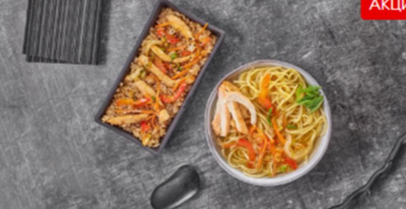Состав: Салат овощи микс, суп куриный с овощами, вок бекон в сливках *Внешний вид блюда может отличаться от фото на сайте