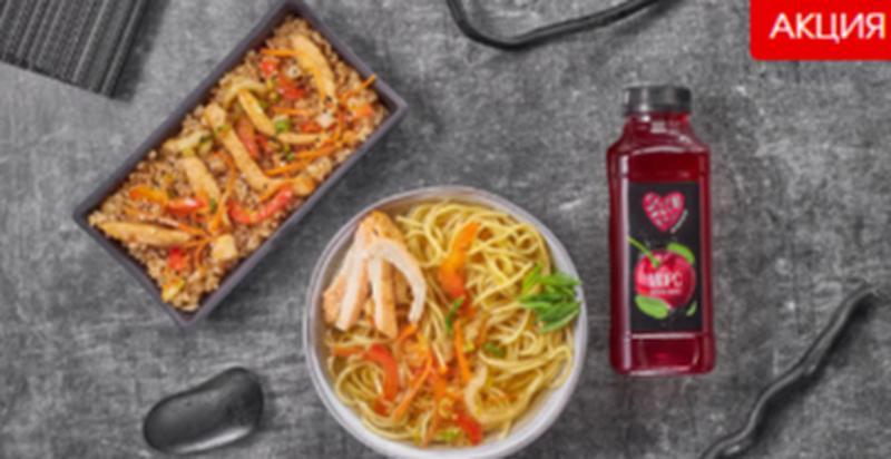 Состав: Суп куриный с овощами, вок курица с рисом, морс вишня-мята фирменный *Внешний вид блюда может отличаться от фото на сайте