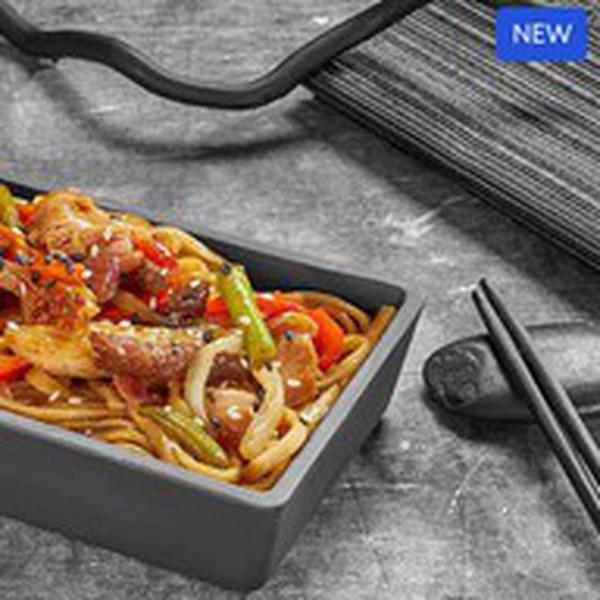 Состав: Лапша рамен, курица, говядина, бекон, болгарский перец, морковь, пекинская капуста, стручковая фасоль, репчатый лук, соус вок, кунжут *Внешний вид блюда может отличаться от фото на сайте