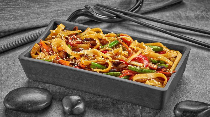 Состав: Лапша рамен, грибы шиитаке, болгарский перец, морковь, пекинская капуста, стручковая фасоль, репчатый лук, соус вок, кунжут *Внешний вид блюда может отличаться от фото на сайте