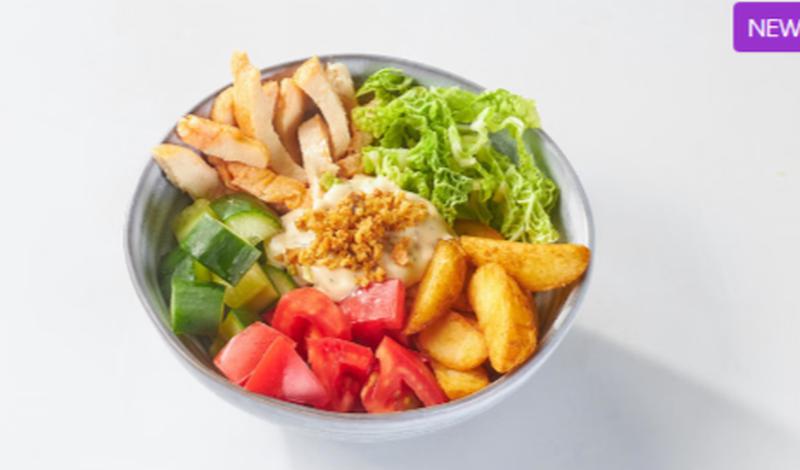Состав: Картофель айдахо, курица, пекинская капуста , помидоры, цезарь соус, лук фри. *Внешний вид блюда может отличаться от фото на сайте