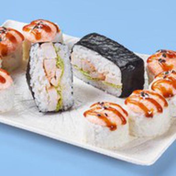 Состав: Аква (8шт.), Онигири с курицей. Не забудьте заказать имбирь, васаби и соевый соус. Они не входят в стоимость заказа