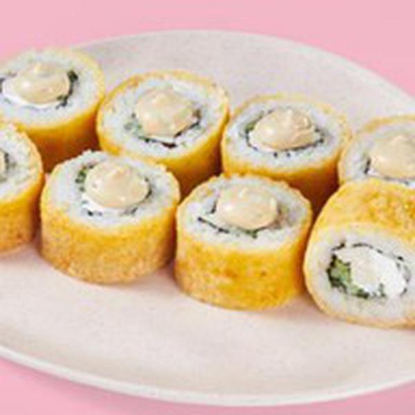 Состав: Сливочный сыр, курица, огурцы, темпурный кляр, панировочные сухари, цезарь соус, рис, нори. *Не забудьте заказать имбирь, васаби и соевый соус. Они не входят в стоимость заказа.