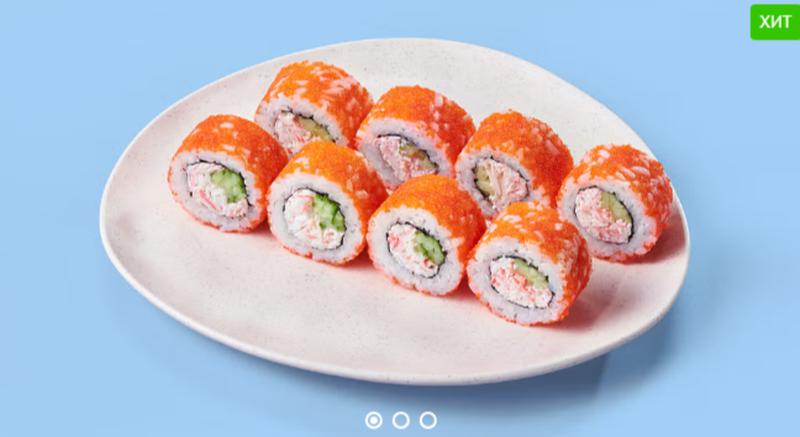 Состав: Крабовые палочки, икра масаго, майонез, огурец, рис (рис, вода, заправка для риса), нори *Не забудьте заказать имбирь, васаби и соевый соус. Они не входят в стоимость заказа.