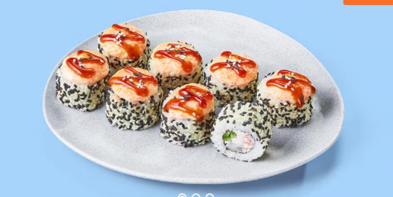 Состав: Крабовые палочки, креветка, фирменный сырный соус (майонез, сыр пармезан, оранжевая икра масаго), унаги соус, огурец, кунжут, рис (рис, вода, заправка для риса), нори *Не забудьте заказать имбирь, васаби и соевый соус. Они не входят в стоимость заказа