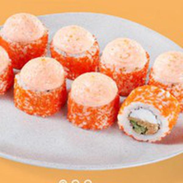 Состав: Сливочный сыр, лосось терияки, огурец, оранжевая икра масаго, фирменный сырный соус, рис, нори. *Не забудьте заказать имбирь, васаби и соевый соус. Они не входят в стоимость заказа