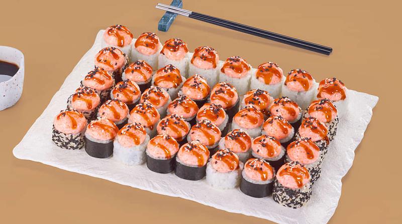 Состав: Нежный с курицей (8 шт.), Аква (8 шт.), Южный (8 шт.), СПА (8 шт.), Флай скай (8 шт.) *Не забудьте заказать имбирь, васаби и соевый соус. Они не входят в стоимость заказа.