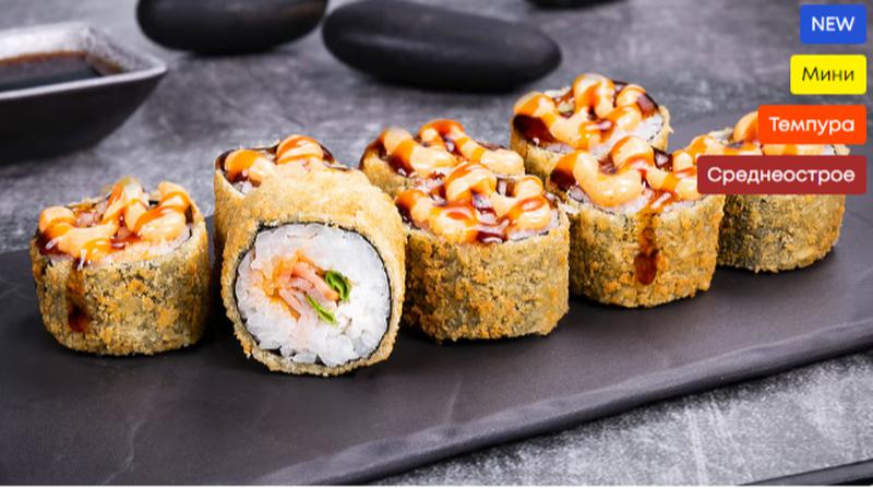 Состав: Бекон, соус спайси, лук зеленый, соус унаги, кляр, сухари панко, рис, нори