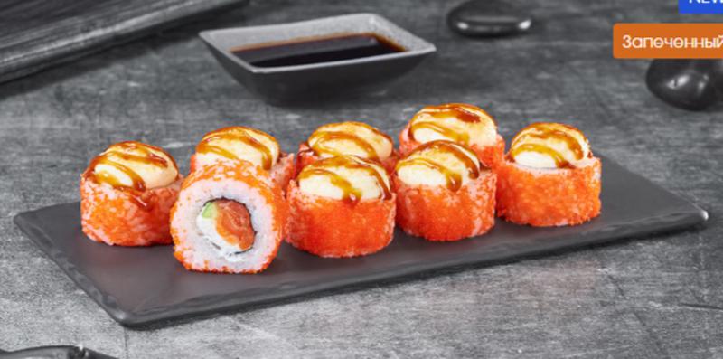 Состав: Сыр сливочный, лосось, авокадо, икра масаго, соус монако, соус унаги, рис, нори. *Внешний вид блюда может отличаться от фото на сайте