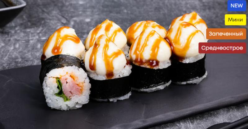 Состав: Бекон, спайси соус, зеленый лук, унаги соус, монако соус, рис, нори *Внешний вид блюда может отличаться от фото