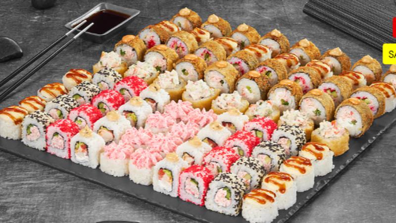 Состав: Калифорния каппа маки с икрой (8 шт), Калифорния каппа маки в кунжуте (8 шт), Лава с крабом (8 шт), Куритос (8 шт), Оливье темпура (8 шт), Крабстер (8 шт), Калифорния темпура (8 шт), Краб фри темпура (8 шт), Мистер крабс запеченный (8 шт), Нежный с курицей запеченный (8 шт)