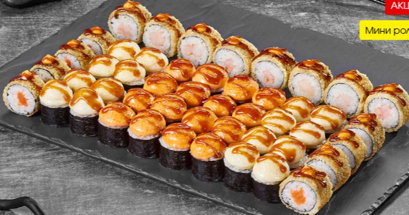 Состав: Сяке лайт темпура 8шт, Эби лайт темпура 8шт, Маки сяки запеченный 8шт, Маки эби запеченный 8шт, Маки мидии запеченный 8шт, Маки краб запеченный 8шт.