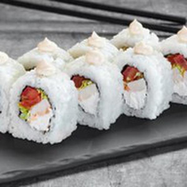 Состав: Курица, соус цезарь, сыр сливочный cremette, помидор, капуста пекинская, нори, рис