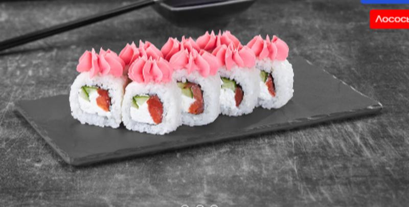 Состав: Крем чиз (розовый), лосось, огурец, рис, нори. *Внешний вид блюда может отличаться от фото на сайте.