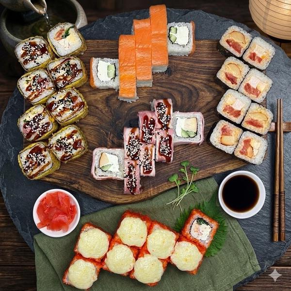Здравствуйте!Заказываю первый раз,и как то не очень,если честно...на вид конечно все красиво.но,мидии в сливочном соусе🤢,уберите из состава пармезан,он все портит,из за горечи сыра,унаги становится кисло-горьким,и в сливках он не растворился,и получилась каша!Ролл с икрой тобико ,точно пожалели икры на весь ролл,так же дело обстоит и с роллом в стружке тунца...жаль сюда фото нельзя прикрепить,так бы увидели все это!Ролл с красной рыбой....это отдельный вид искусства!Вы серьезно думаете ,что обрезью украшают ролл?на эту черноту смотреть не очень....Вообщем 2/10!