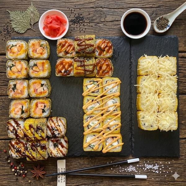 Здравствуйте!Заказываю первый раз,и как то не очень,если честно...на вид конечно все красиво.но,мидии в сливочном соусе🤢,уберите из состава пармезан,он все портит,из за горечи сыра,унаги становится кисло-горьким,и в сливках он не растворился,и получилась каша!Ролл с икрой тобико ,точно пожалели икры на весь ролл,так же дело обстоит и с роллом в стружке тунца...жаль сюда фото нельзя прикрепить,так бы увидели все это!Ролл с красной рыбой....это отдельный вид искусства!Вы серьезно думаете ,что обрезью украшают ролл?на эту черноту смотреть не очень....Вообщем 2/10!
