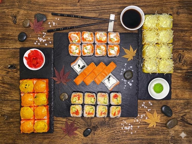 Здравствуйте!Заказываю первый раз,и как то не очень,если честно...на вид конечно все красиво.но,мидии в сливочном соусе🤢,уберите из состава пармезан,он все портит,из за горечи сыра,унаги становится кисло-горьким,и в сливках он не растворился,и получилась каша!Ролл с икрой тобико ,точно пожалели икры на весь ролл,так же дело обстоит и с роллом в стружке тунца...жаль сюда фото нельзя прикрепить,так бы увидели все это!Ролл с красной рыбой....это отдельный вид искусства!Вы серьезно думаете ,что обрезью украшают ролл?на эту черноту смотреть не очень....Вообщем 2/10!