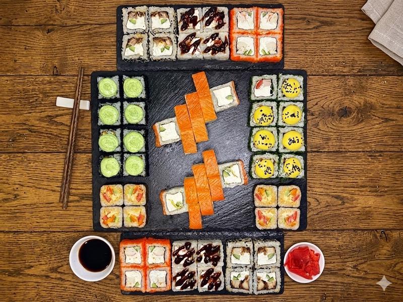 Здравствуйте!Заказываю первый раз,и как то не очень,если честно...на вид конечно все красиво.но,мидии в сливочном соусе🤢,уберите из состава пармезан,он все портит,из за горечи сыра,унаги становится кисло-горьким,и в сливках он не растворился,и получилась каша!Ролл с икрой тобико ,точно пожалели икры на весь ролл,так же дело обстоит и с роллом в стружке тунца...жаль сюда фото нельзя прикрепить,так бы увидели все это!Ролл с красной рыбой....это отдельный вид искусства!Вы серьезно думаете ,что обрезью украшают ролл?на эту черноту смотреть не очень....Вообщем 2/10!