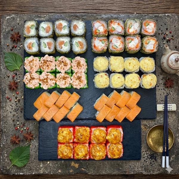 Здравствуйте!Заказываю первый раз,и как то не очень,если честно...на вид конечно все красиво.но,мидии в сливочном соусе🤢,уберите из состава пармезан,он все портит,из за горечи сыра,унаги становится кисло-горьким,и в сливках он не растворился,и получилась каша!Ролл с икрой тобико ,точно пожалели икры на весь ролл,так же дело обстоит и с роллом в стружке тунца...жаль сюда фото нельзя прикрепить,так бы увидели все это!Ролл с красной рыбой....это отдельный вид искусства!Вы серьезно думаете ,что обрезью украшают ролл?на эту черноту смотреть не очень....Вообщем 2/10!
