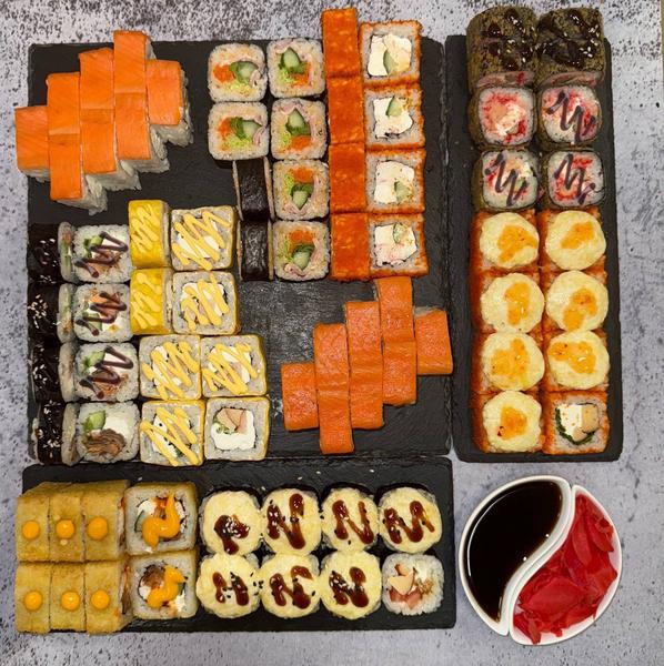Здравствуйте!Заказываю первый раз,и как то не очень,если честно...на вид конечно все красиво.но,мидии в сливочном соусе🤢,уберите из состава пармезан,он все портит,из за горечи сыра,унаги становится кисло-горьким,и в сливках он не растворился,и получилась каша!Ролл с икрой тобико ,точно пожалели икры на весь ролл,так же дело обстоит и с роллом в стружке тунца...жаль сюда фото нельзя прикрепить,так бы увидели все это!Ролл с красной рыбой....это отдельный вид искусства!Вы серьезно думаете ,что обрезью украшают ролл?на эту черноту смотреть не очень....Вообщем 2/10!