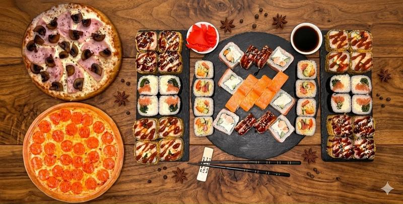 Спасибо большое за доставку, роллы и пицца очень вкусные, доставка во время, большой ассортимент меню и не дорого